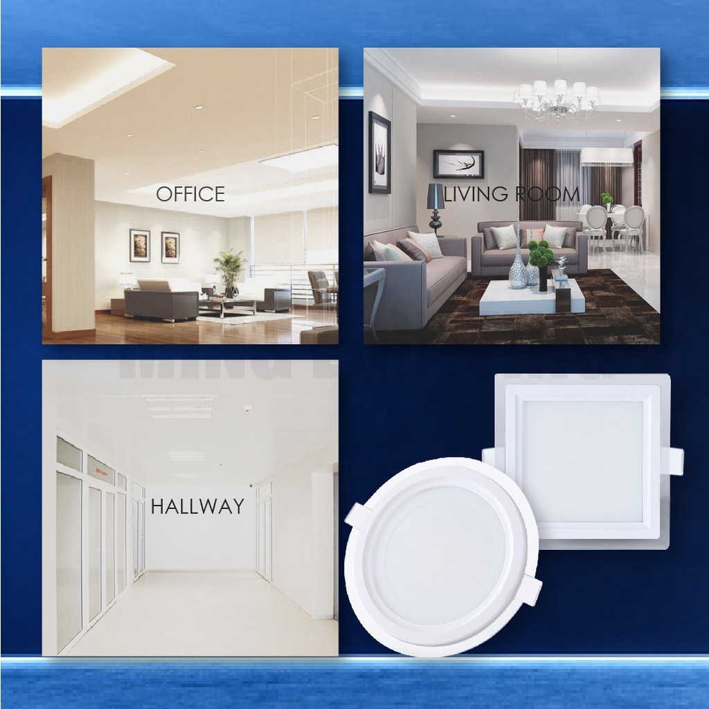 (Sirim) 12W 18W 24W LED Glass Recessed Downlight Ceiling Down Light Round Square Room Lights Lighting Lampu Rumah Siling