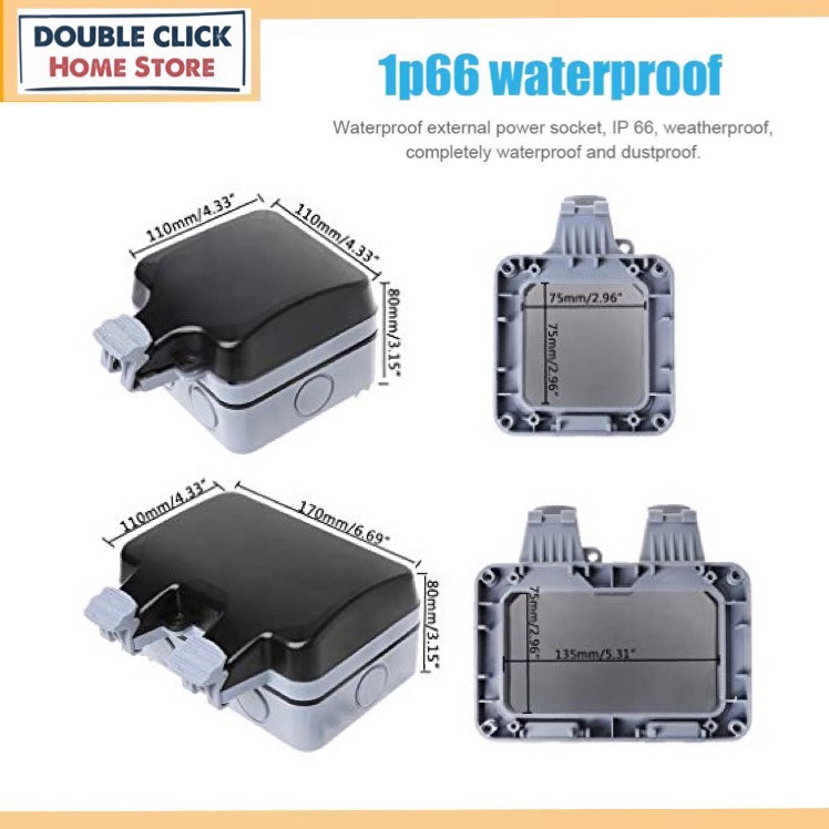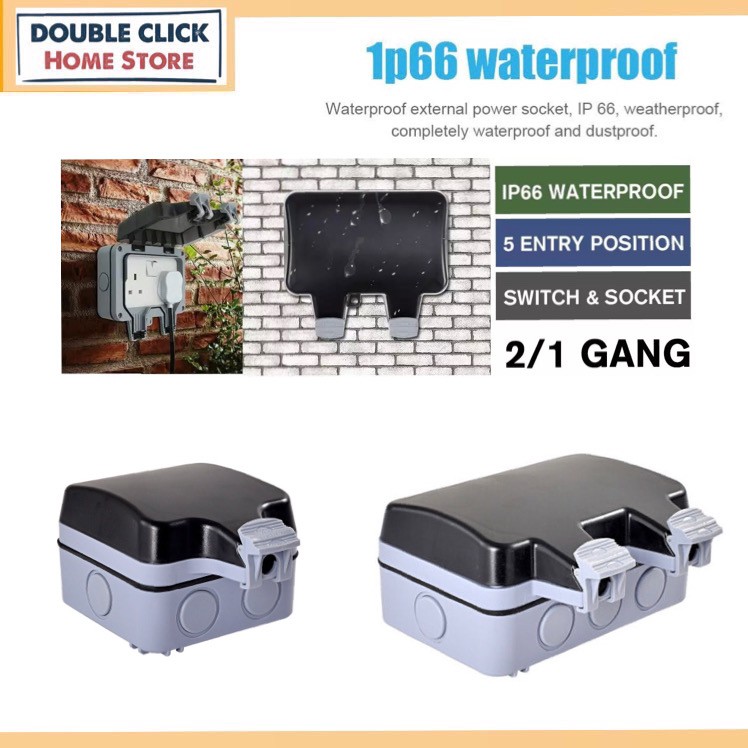 (Sirim) Heavy Duty IP66 13A 1Way 2Way Outdoor Switch Socket Waterproof Outdoor Socket Cover Outdoor Wall Socket