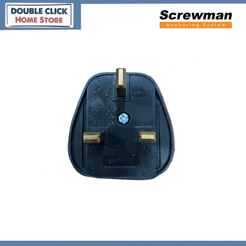 (Sirim) Screwman 13A Plug Top 3pin UK Type Plug Top - Black