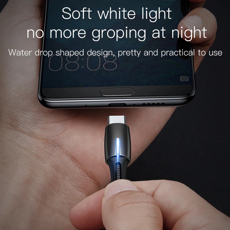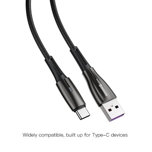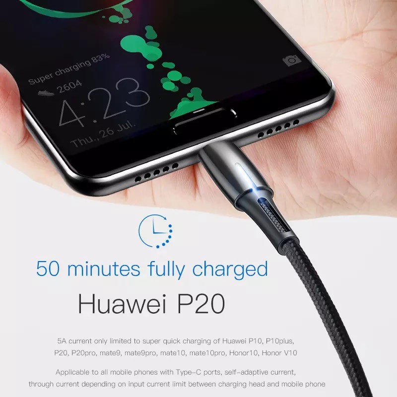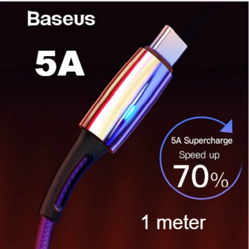 (Support Huawei SuperCharge 5A) Baseus 5A SuperCharge 1m & 2m Type C for Huawei Charge and Data Cable with Led Light