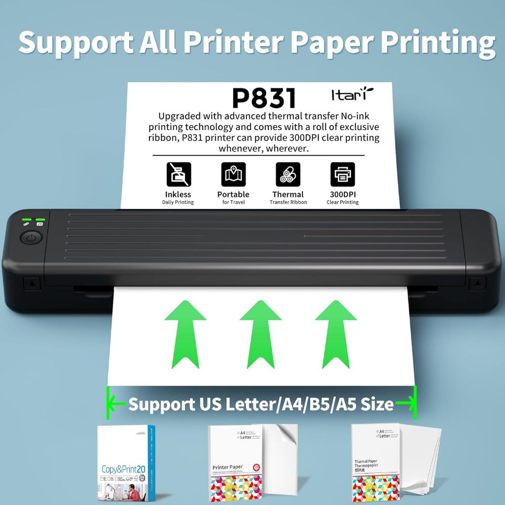(Support Normal/Regular Paper Printing)Phomemo P831 300DPI Wireless Bluetooth Portable A4 Printer