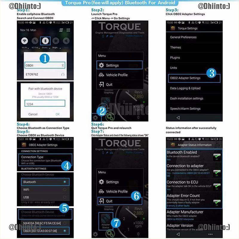 (TDST) Elm327 Obd2 Obdii Car Diagnostic Bluetooth Scanner Torque Auto Scan For
