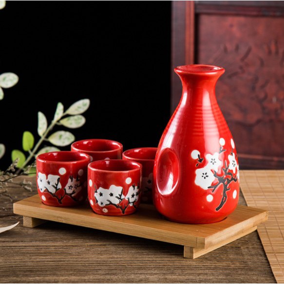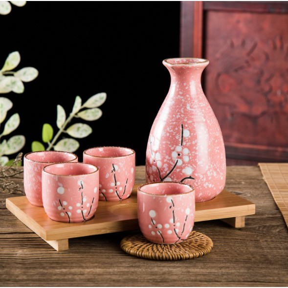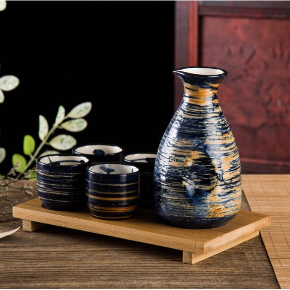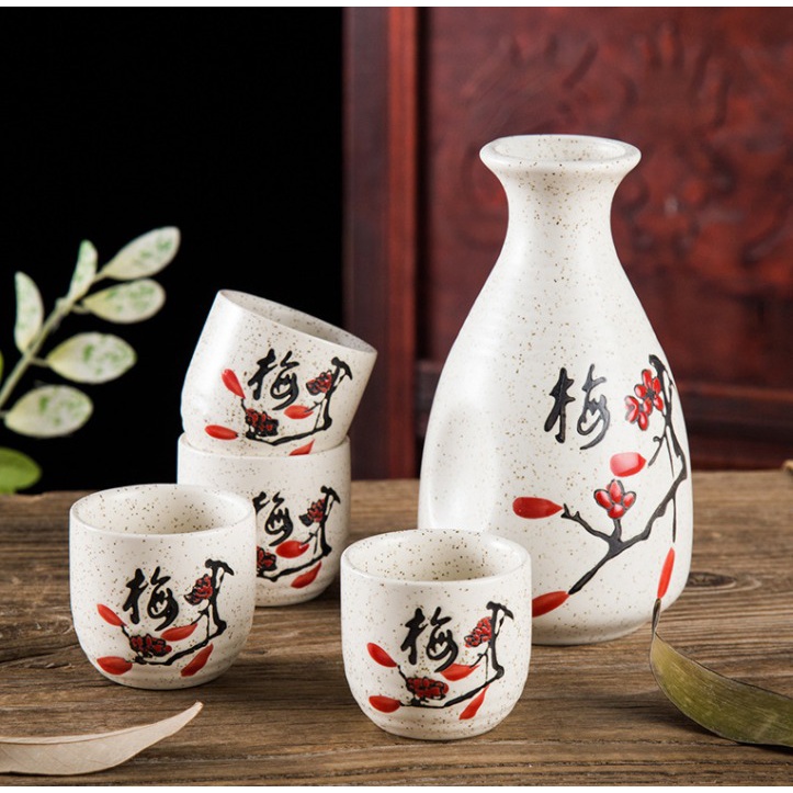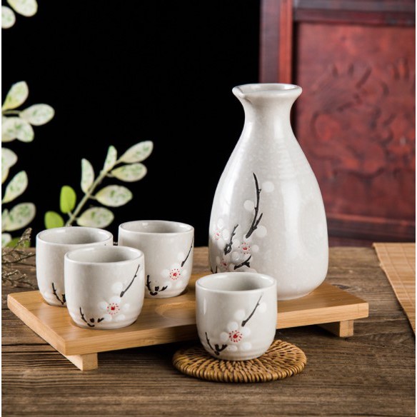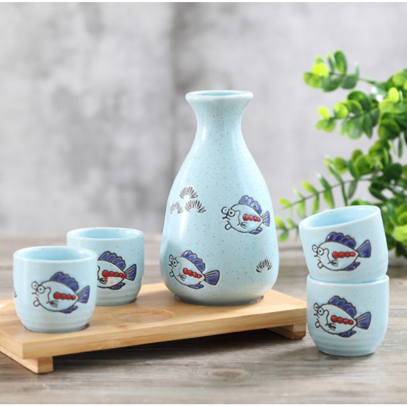 (TLLS) READY STOCK !!!!Japanese Style Tokuri Sake Set 250ml/ 日式陶瓷清酒壶酒杯釉下彩清酒具一壶四杯250豪升/烧酒壶250ml