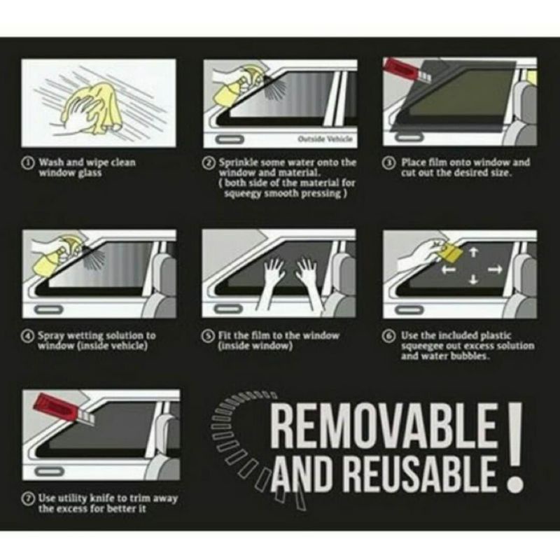 (Tinted Kereta) Car Magic Tint Tinted House Tint Film Reusable Removable NO Glue 20% Black DIY Window Sunshade