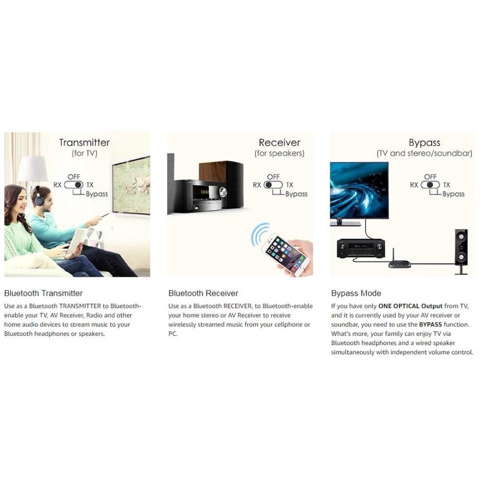 (Transmitter & Receiver) Avantree Oasis Plus aptX-HD Bluetooth Low Latency Audio Adapter for TV Home Theater Soundbar