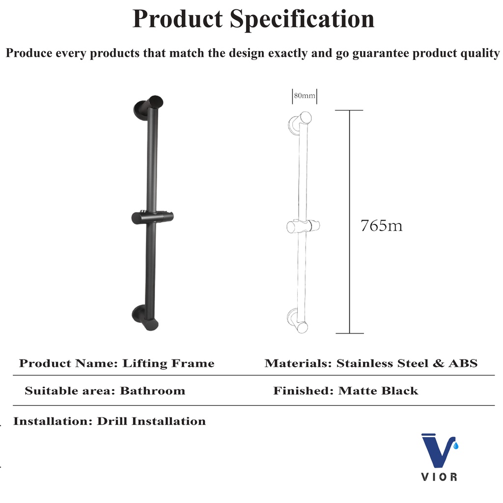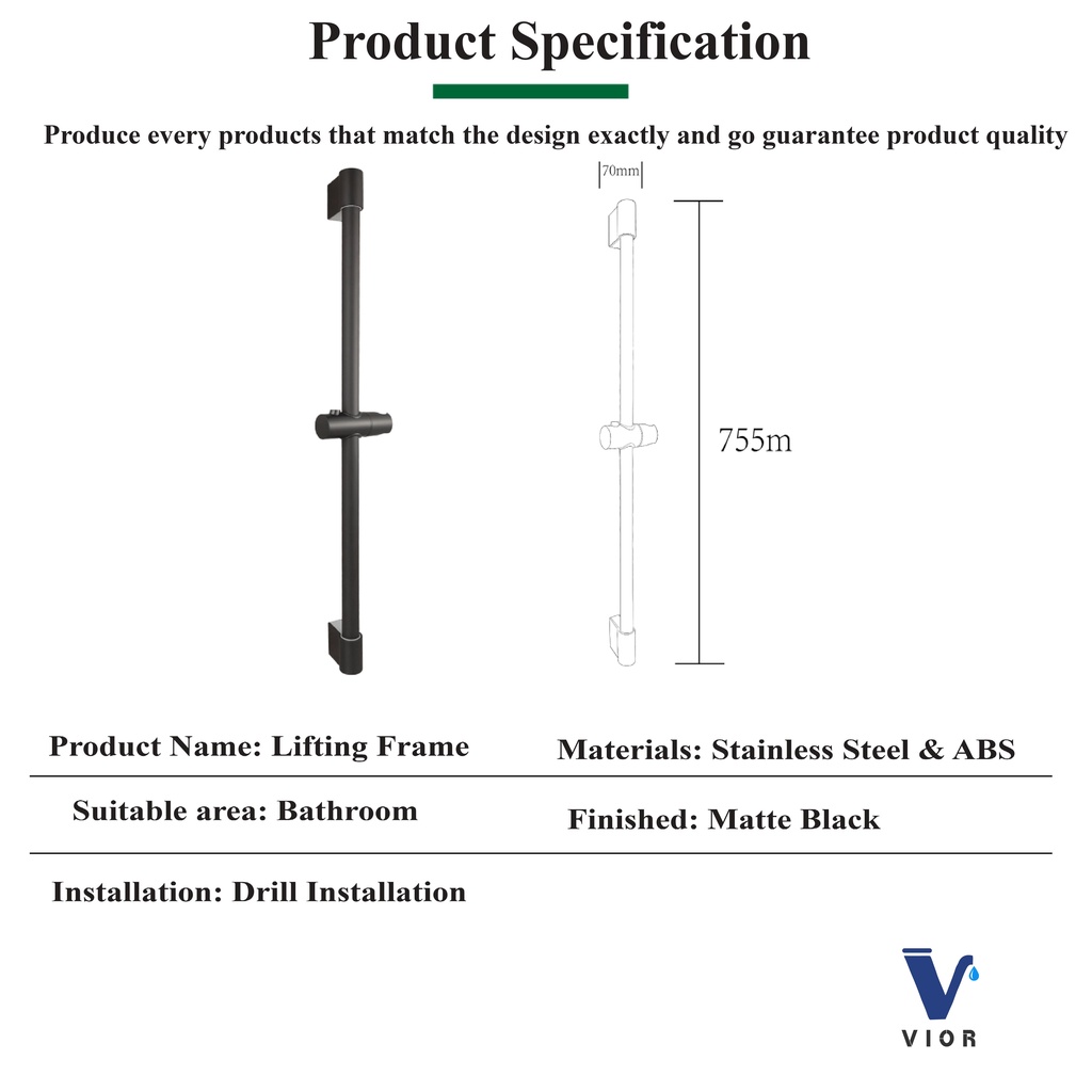(VIOR) Slide Bar Wall Mounted Rotatable Shower Bar Adjustable Sliding Rail Set Lifting Rod
