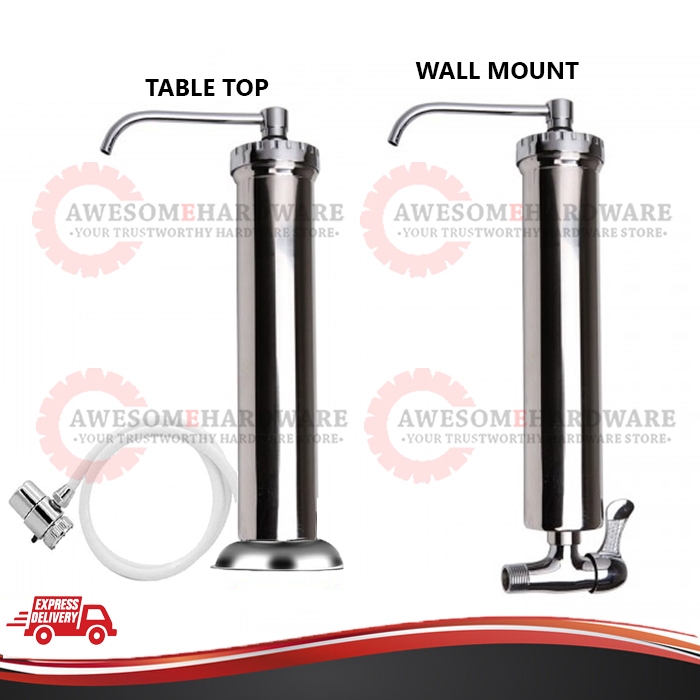 (WALL MOUNT/TABLE TOP) SUPER THIN STAINLESS STEEL CERAMIC WATER FILTER SET TO REDUCE DIRT SEDIMENT PENAPIS AIR SERAMIK
