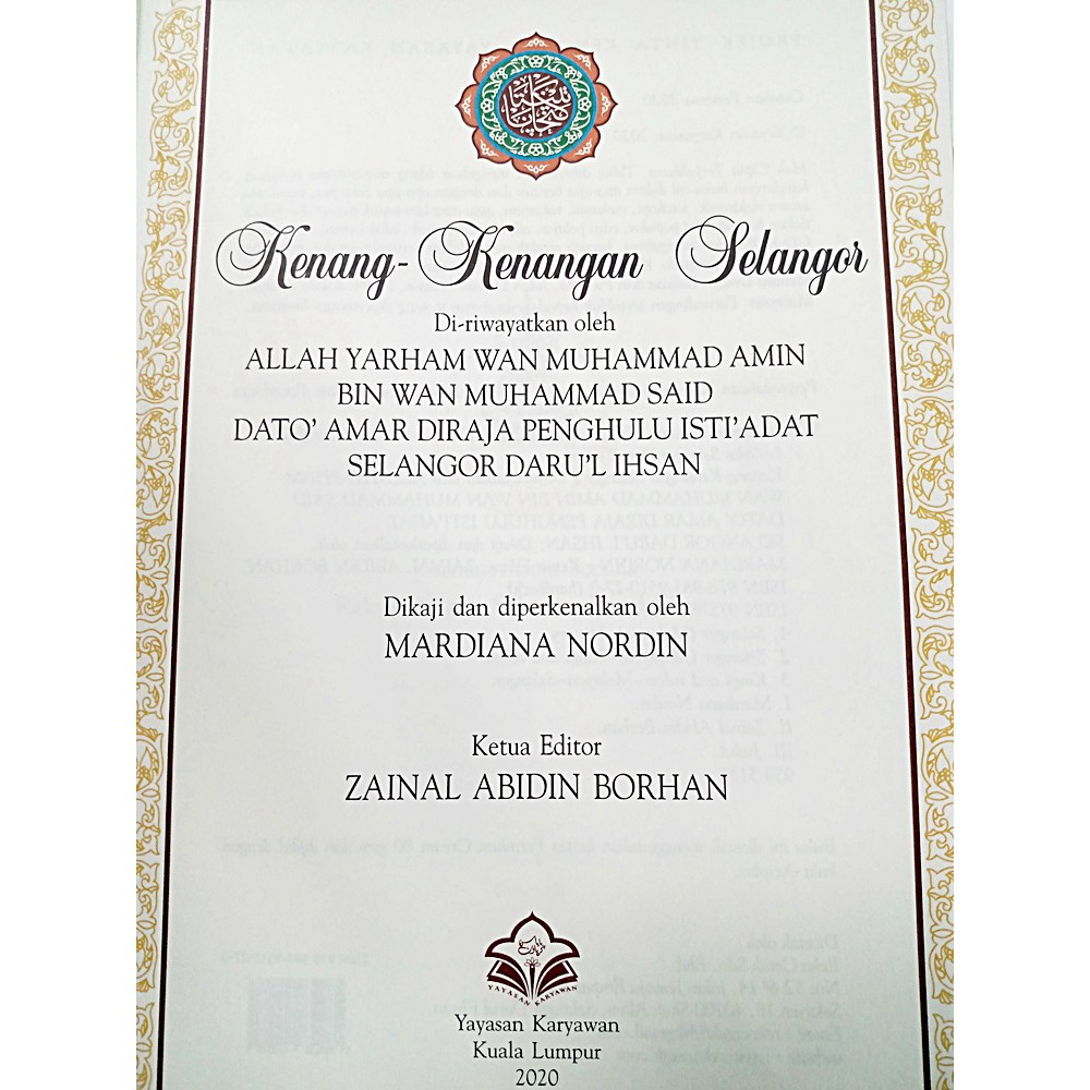 (YK) Karya Agung: KENANG-KENANGAN SELANGOR: Diriwayat oleh Allahyarham Wan Muhammad Amin bin Wan Muhammad Said