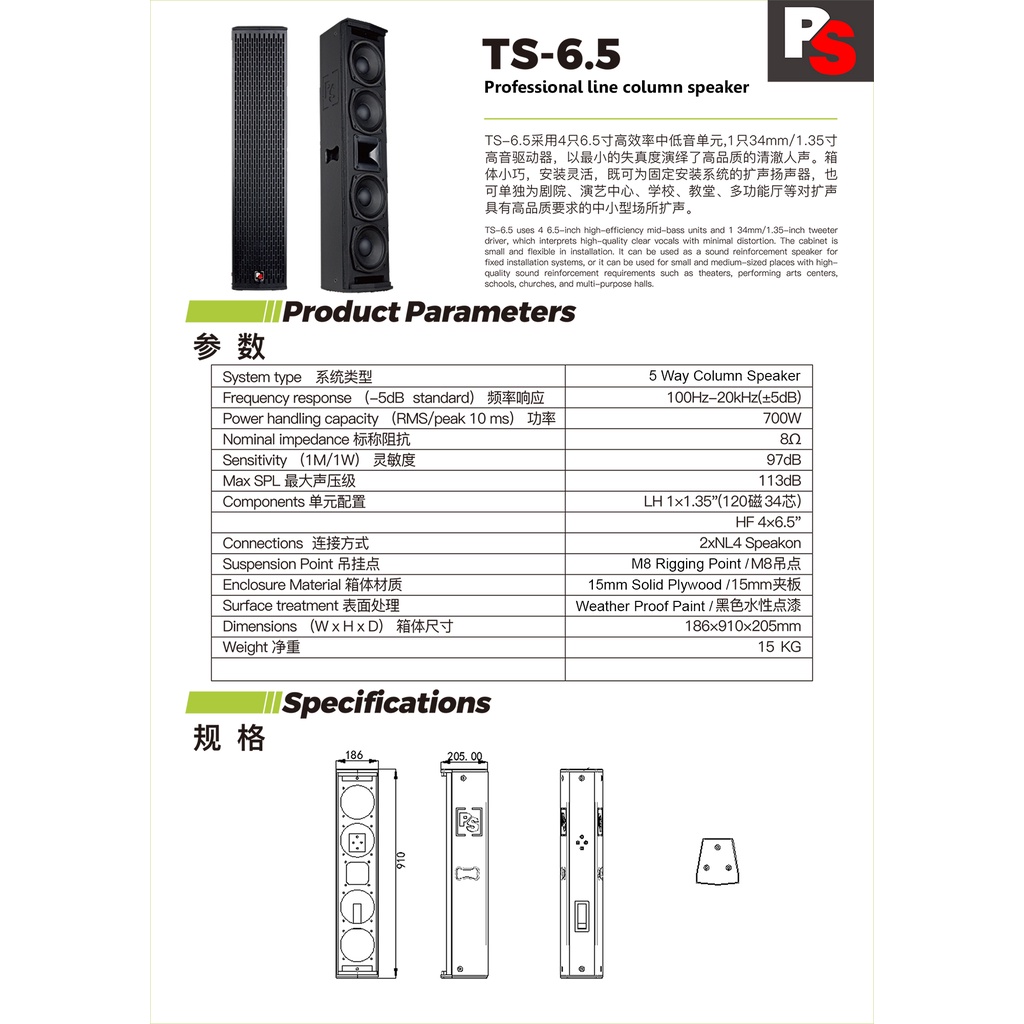 (one pair/ sepasang) PS Pro Sound TS-6.5 800Watt Professional Passive Line Column Speaker Indoor/Outdoor Performance