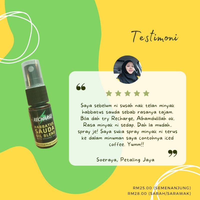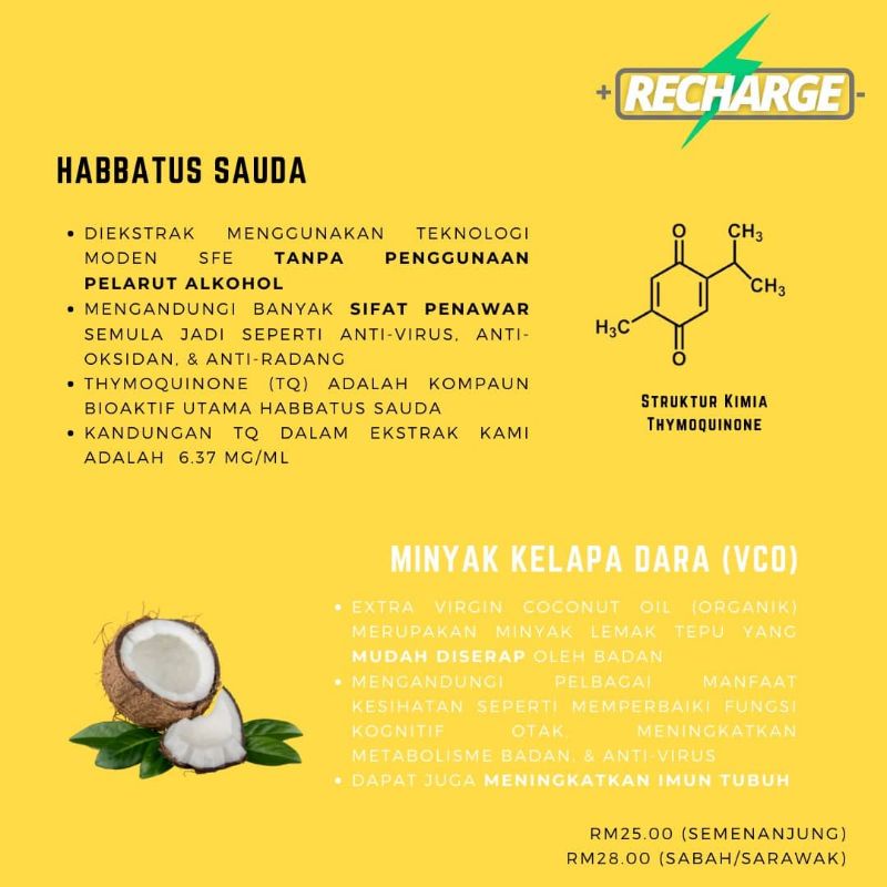 (spray)EKSTRAK HABBATUS SAUDA& MINYAK KELAPA DARA ORGANIK -RECHARGE -Premium Quality