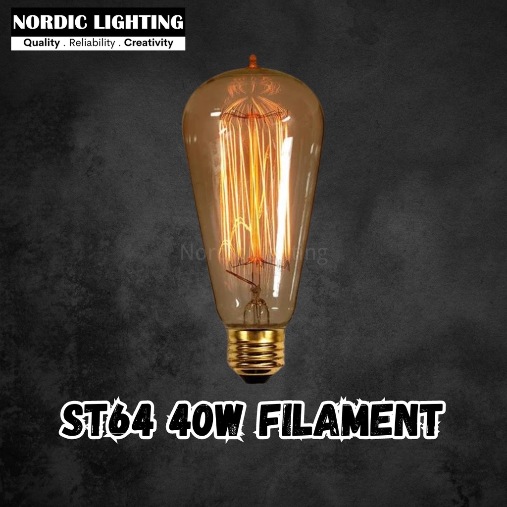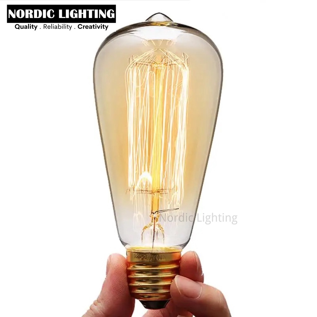 (x1PCS) Nordic Lighting ST64 Bulb 40Watt Classic Filament EDISON BULBS E27 Fitting Mentol Klasik (ST64-40W)