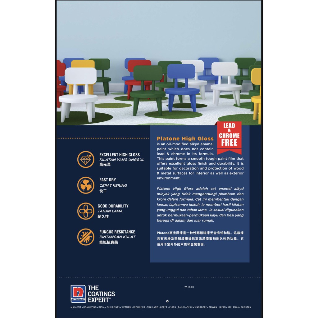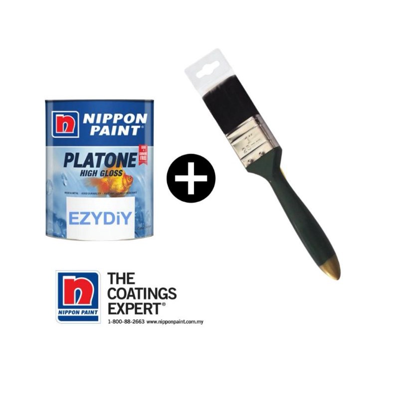 1Litres NIPPON PAINT PLATONE HIGH GLOSS METAL & WOOD PAINT FREE 1" PAINT BRUSH