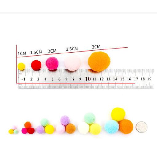 **READY STOCK** Colourful DIY Pom Pom fluffy ball (2.0cm / 3.0cm )10PC /PKT