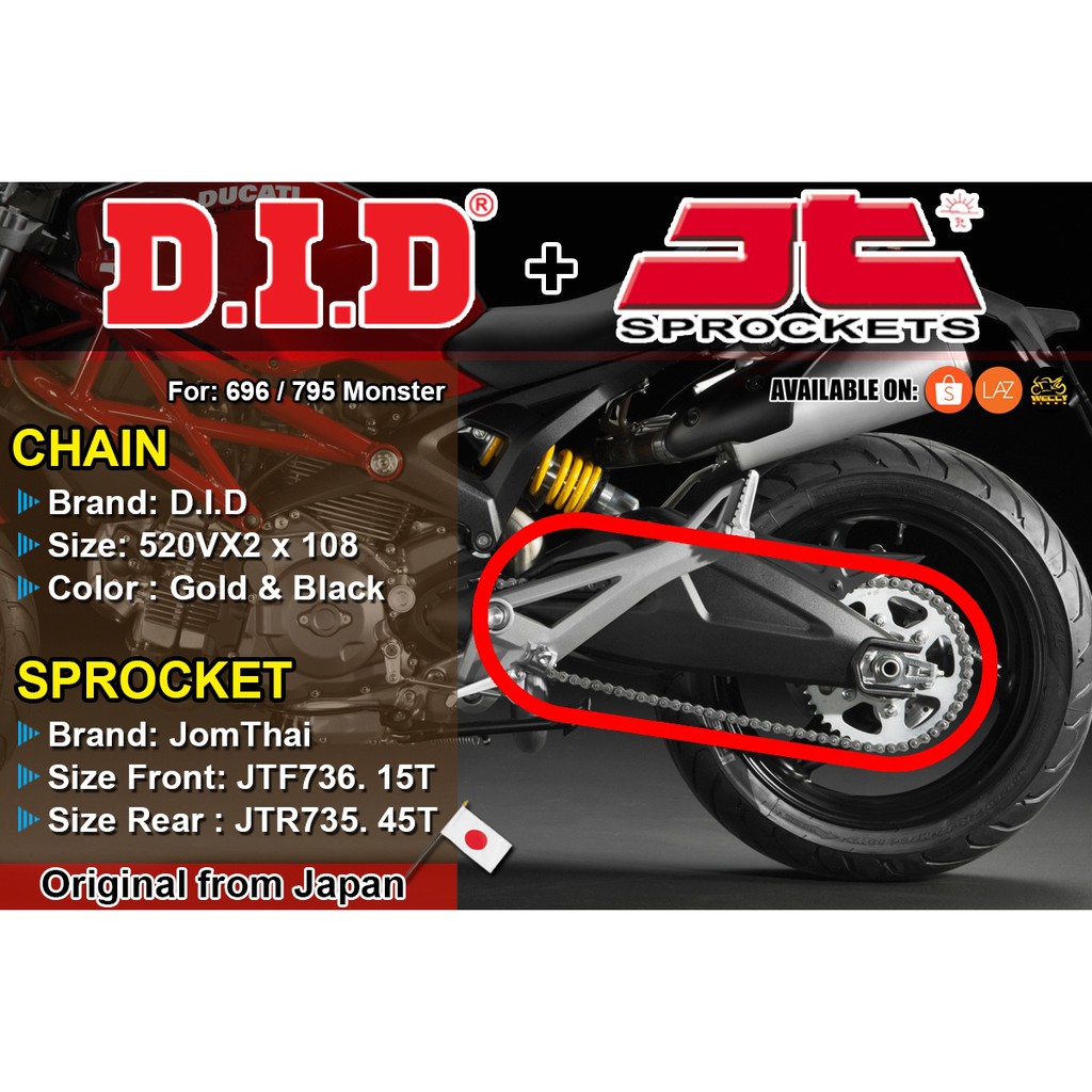 **Sprocket Chain Ducati 696 / 795 Monster Full Set DID+JomThai (Gold & Black Colour Chain)