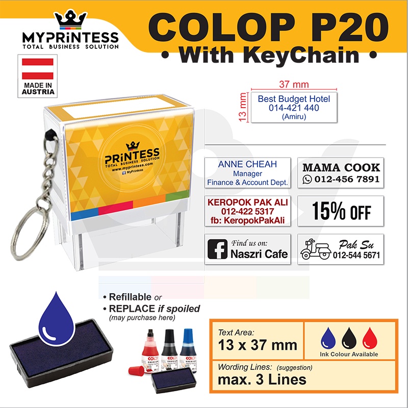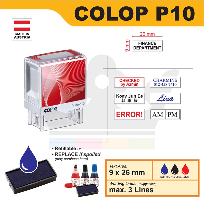 * Same Day post * Rubber Stamp Colop P10lP20|P30|P40|P50lP60 Cop (CHAT DETAIL | INK BIRU) 12PM cutoff