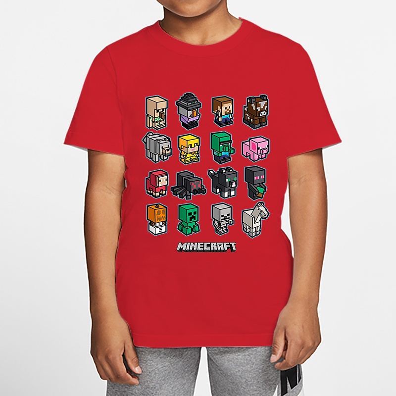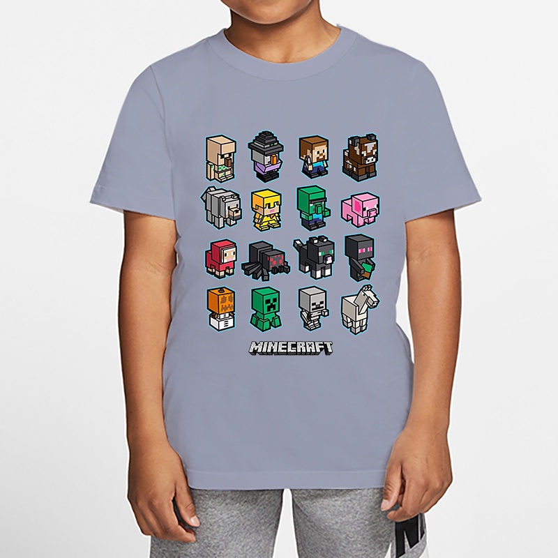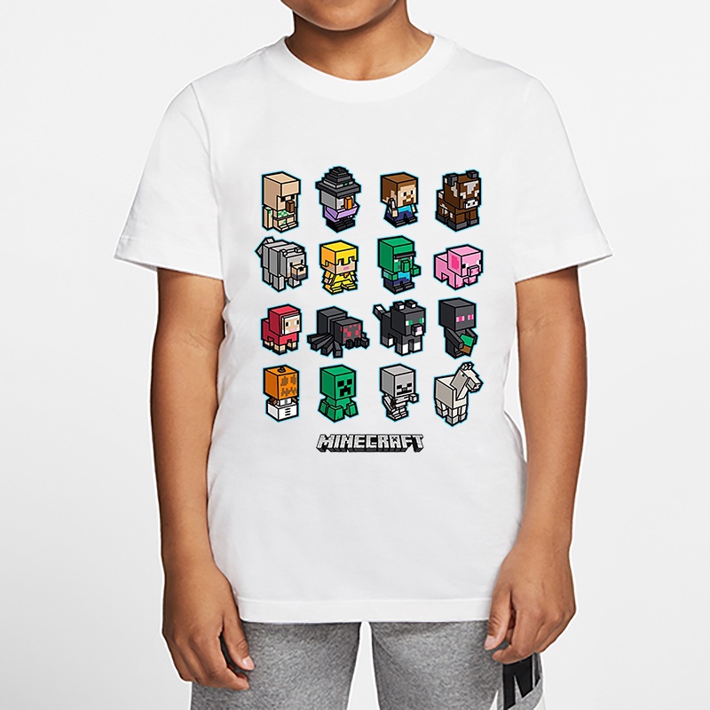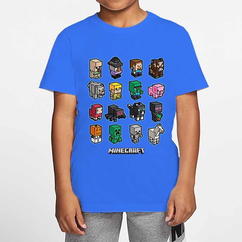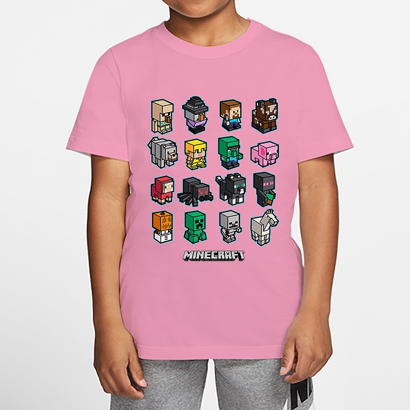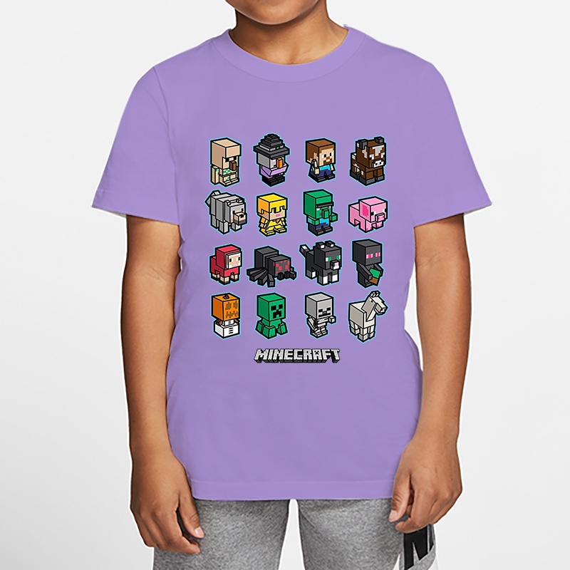 *8 Colors*in Stock*Minecraft Boy T-shirt Summer Girl Shirt Children's Top Cartoon Baju Game Print 3-13 Years Old Kids