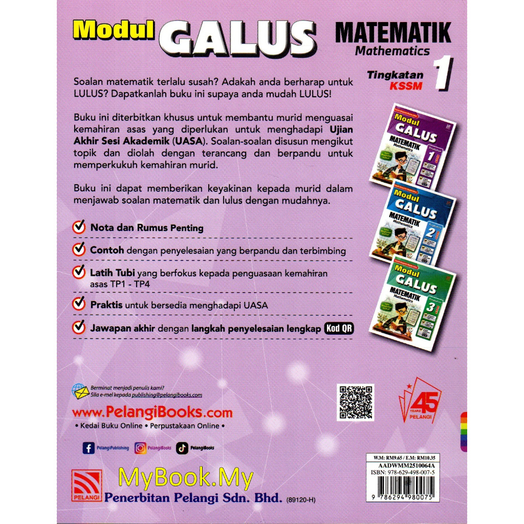 *BARU* MyB Buku Latihan : Matematik Mathematics Tingkatan 1 - Modul GALUS Teknik Berpandu Mudah Lulus (Pelangi)