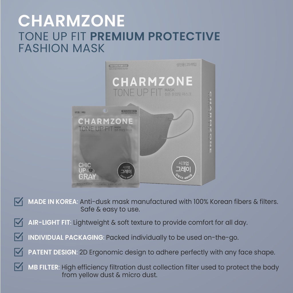 *Made in Korea* CHARMZONE Tone Up Fit Premium Mask (SIRIM CERTIFIED) - GREY (M/L Size) (25PCS/BOX)