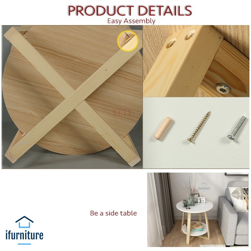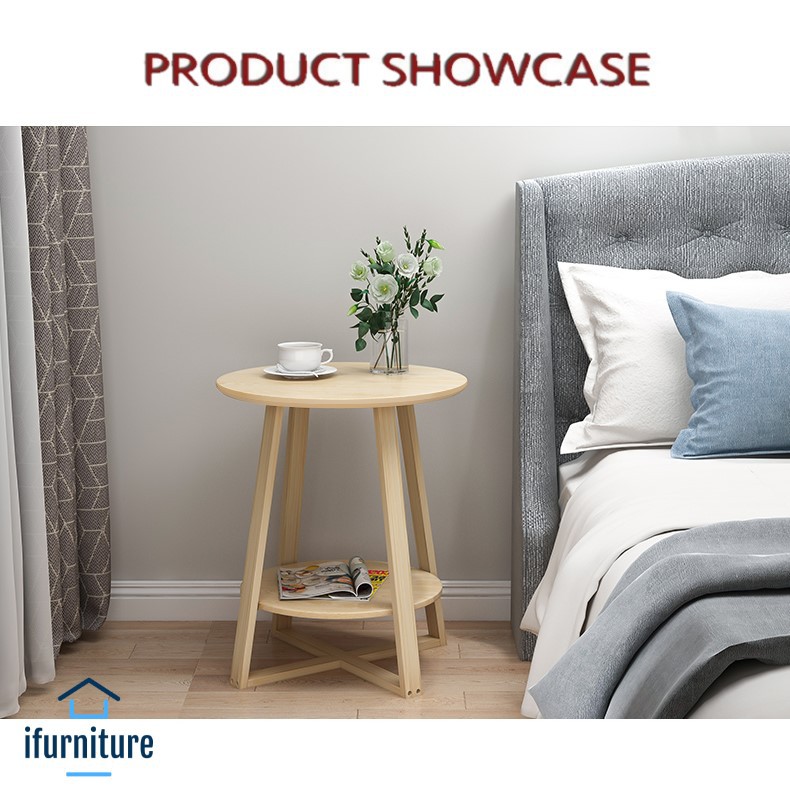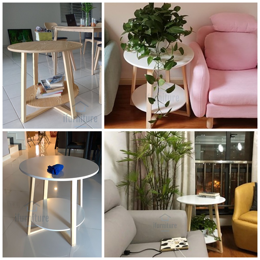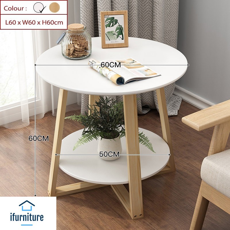 *Nordic Round Coffee Table with Wooden Legs [5016]