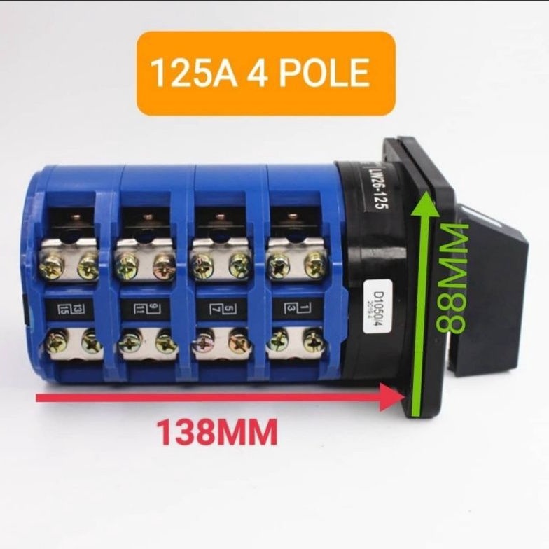 *READY STOCK* 125A 4 POLE CHANGE OVER SWITCH 1-0-2 (3 PHASE 415V) PLATE SIZE :88MM x 88MM