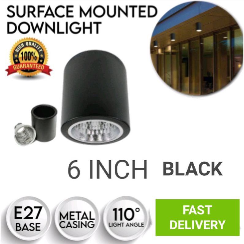 *READY STOCK* 6" Surface Mounted Ceiling Light- E27 (Round Type Black Fitting)