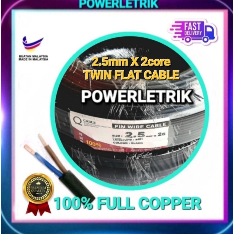 🔥READY STOCK🔥 PURE COPPER 2.5MM X 2C TWIN FLAT PIN WIRE /2.5MM TEMPORARY PIN CABLE/ 2.5MM x 2C WAYAR PASAR MALAM - BLACK