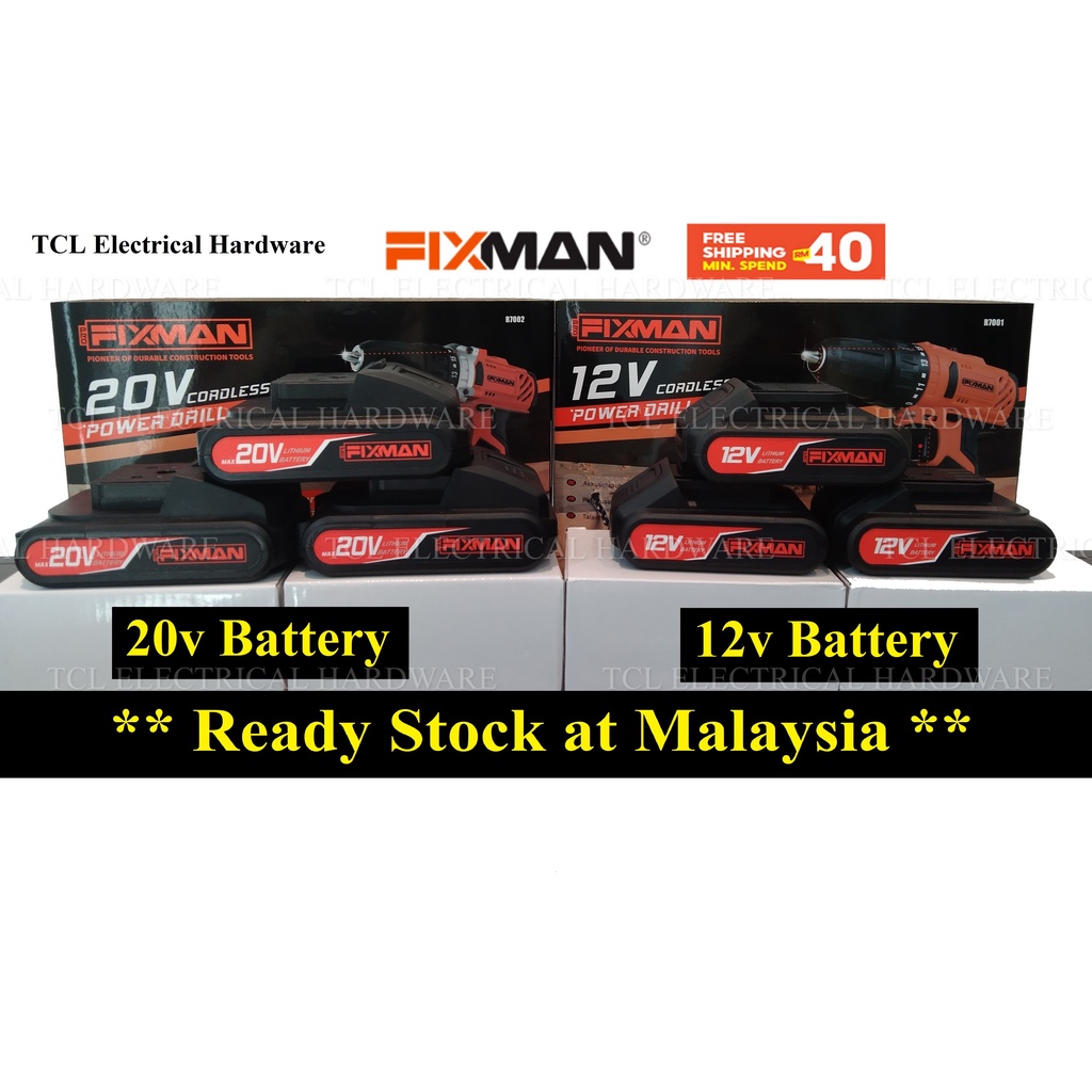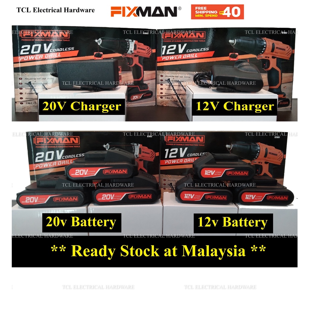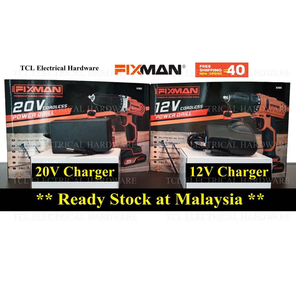 *READY STOCK* Pro Fixman 12V & 20V Battery & Charger - Pro FIXMAN DRILL for R7001 PTB01-1 R7002 PTB03-2