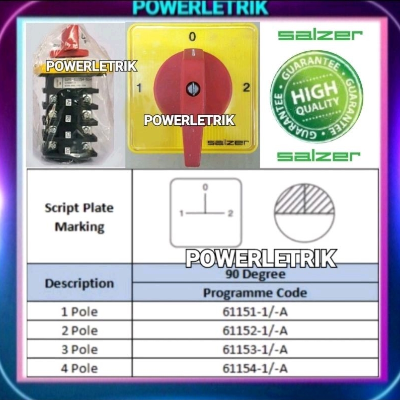 *READY STOCK* SALZER 63A 1.0.2 4 POLES SELECTOR CHANGE OVER SWITCH (3 PHASE- 415V) PLATE SIZE IS 88mmx88mm