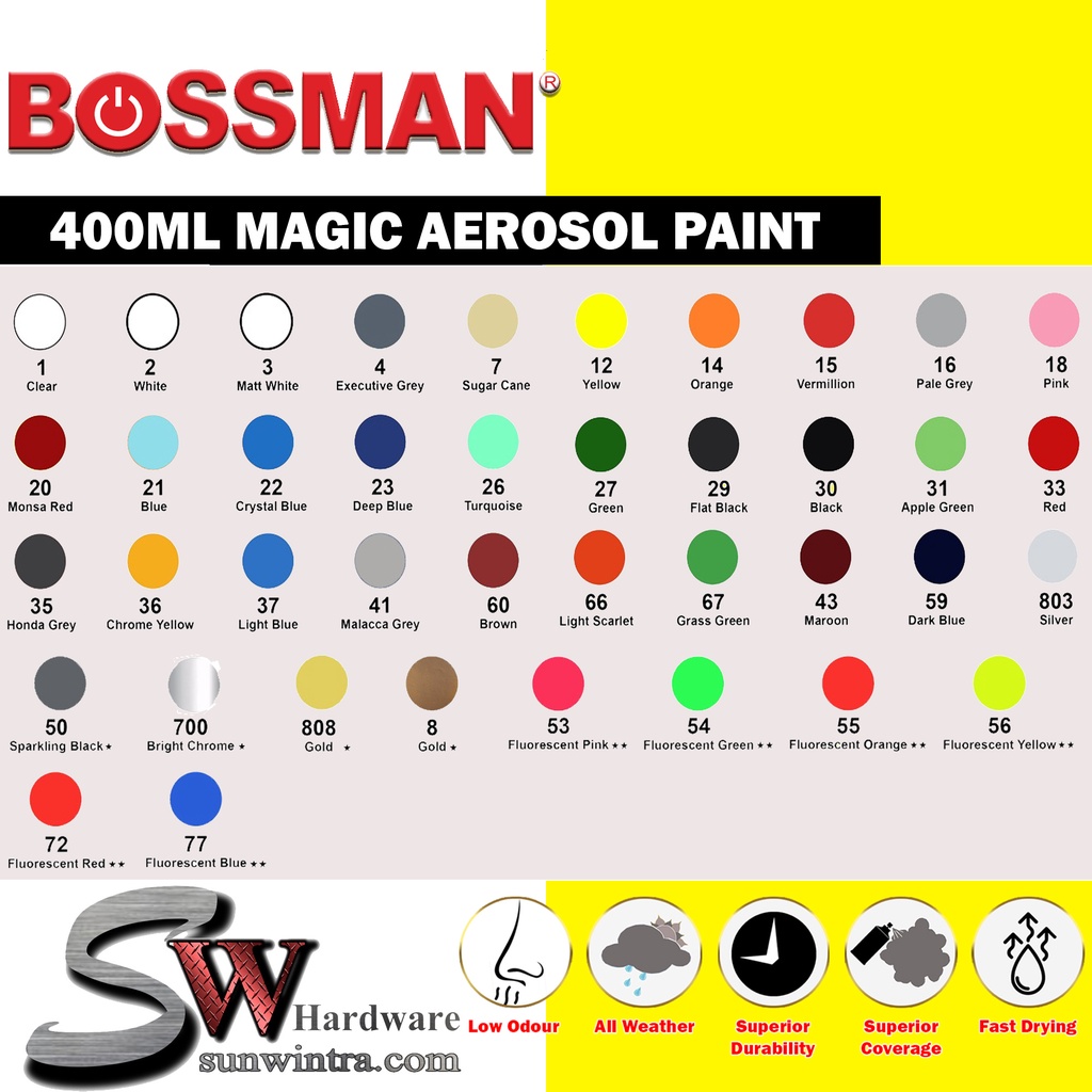 *READY STOCK*BOSSMAN 400ML MAGIC AEROSOL SPRAY PAINT #STANDARD COLOURS /PAINT SPRAY MOTORCYCLE