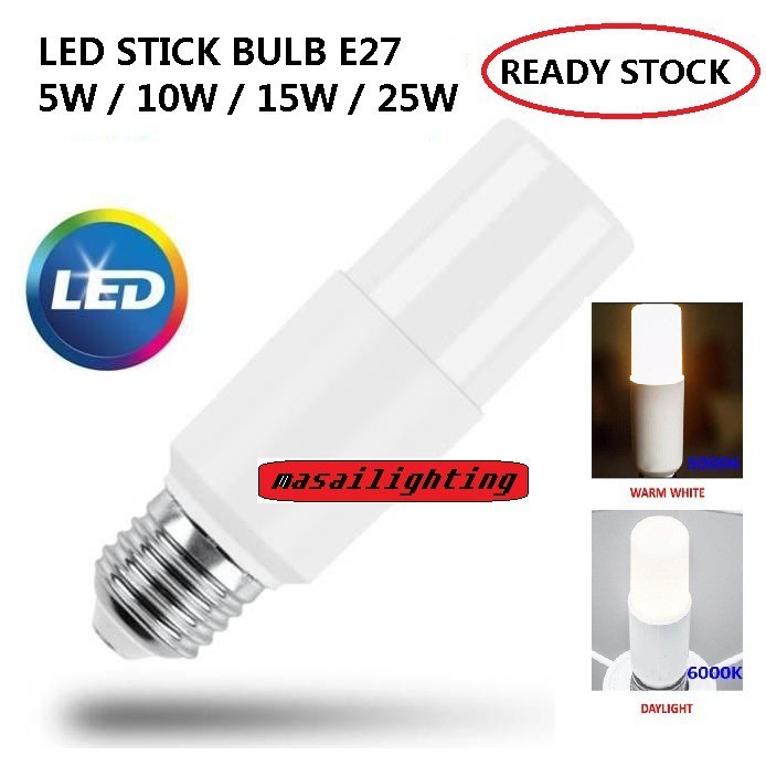 *Ready Stock* LED 5W/10W/15W/25W STICK BULB ENERGY SAVING LIGHT BULB HIGH QUALITY SUPER BRIGHT ( Daylight / Warm White)