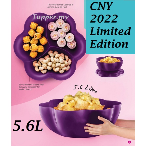 *Ready stock*Tupperware Triple Snack Serving Bowl 2 in 1 Serving Bowl (1) 5.6L Purple giant large size flower