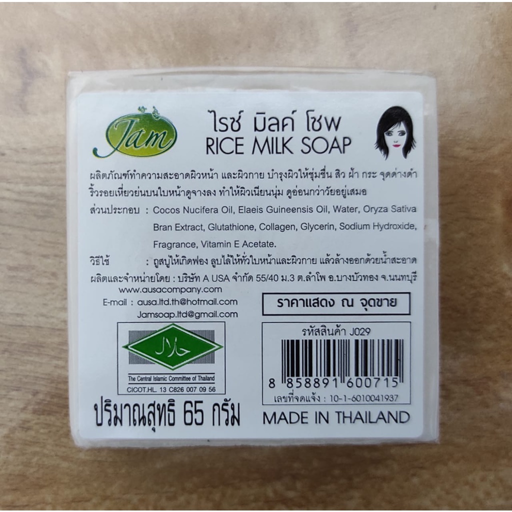 *THAILAND 100% ORIGINAL* Jam Rice Milk Soap with whitening Gluta + Collagen | Sabun Susu Beras 65g / piece