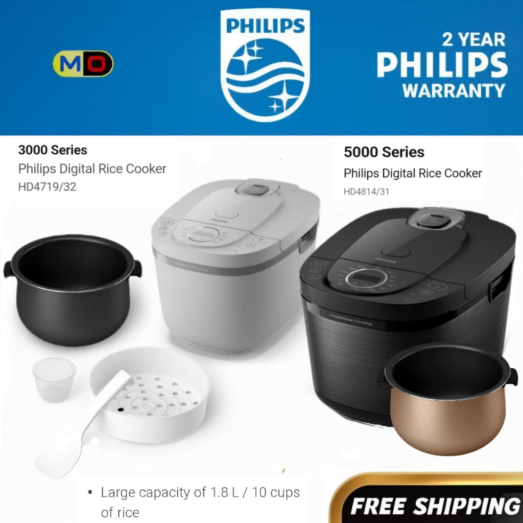 [NEW] PHILIPS 5000 Series Rice Cooker 1.8L with Patented Fresh Defense Technology,18 cooking menus, HD4814 HD4719