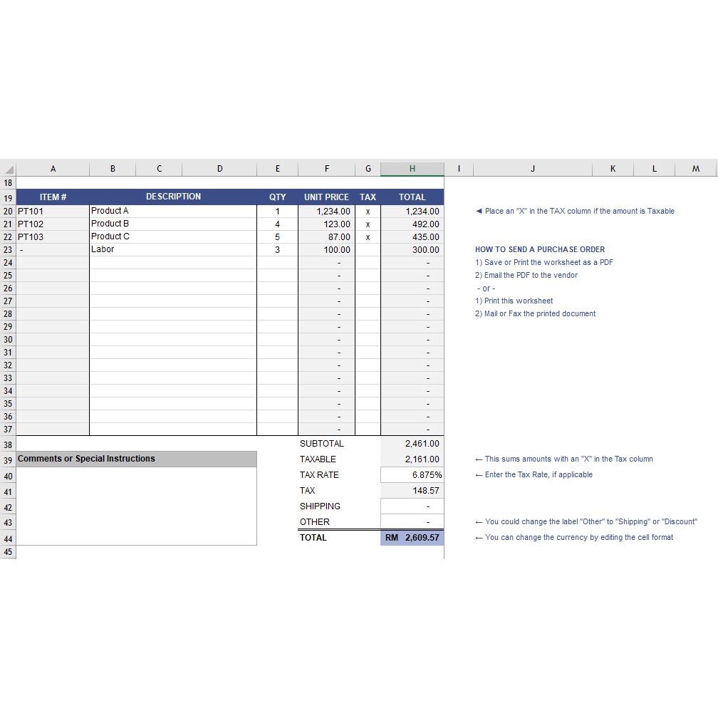 [#05] Microsoft Excel Purchase Order with Price List (PO01) / Contoh Template Excel Pesanan Belian Dengan Butiran Harga