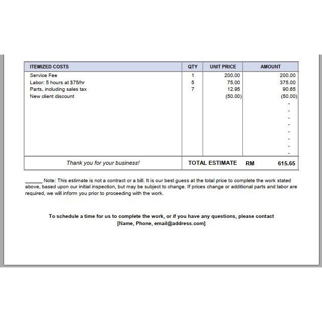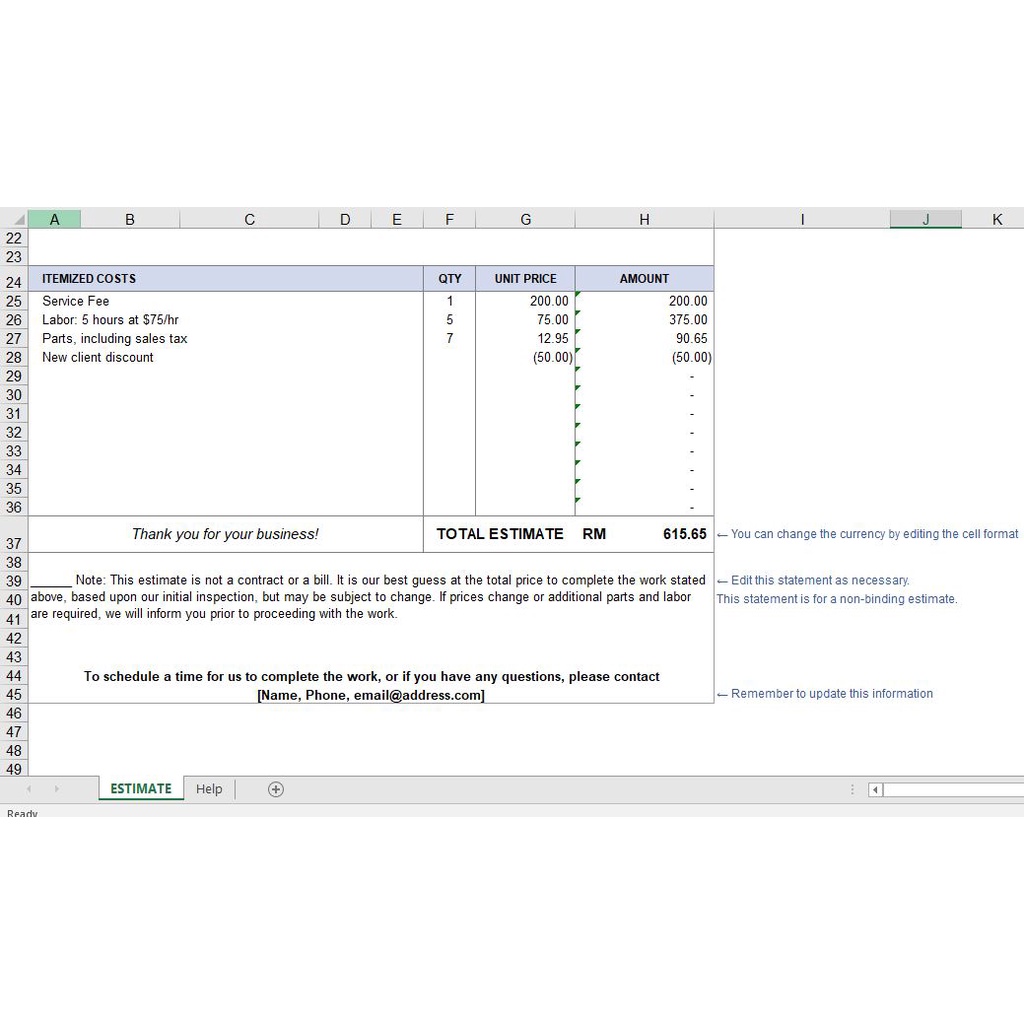 [#08] Job Estimate Excel Template / Contoh Template Excel Anggara Kerja (Business Proposal / Rancangan Perniagaan)