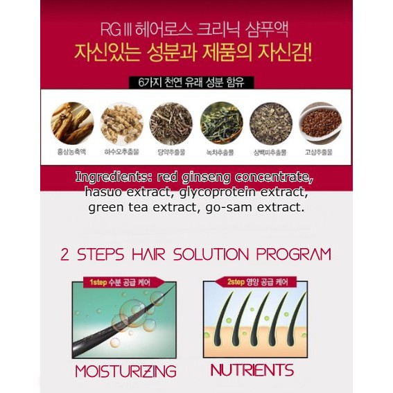 [1+1 COMBO] RG3 Hair Loss Clinic Shampoo Korean Red Ginseng 520ml x 2EA