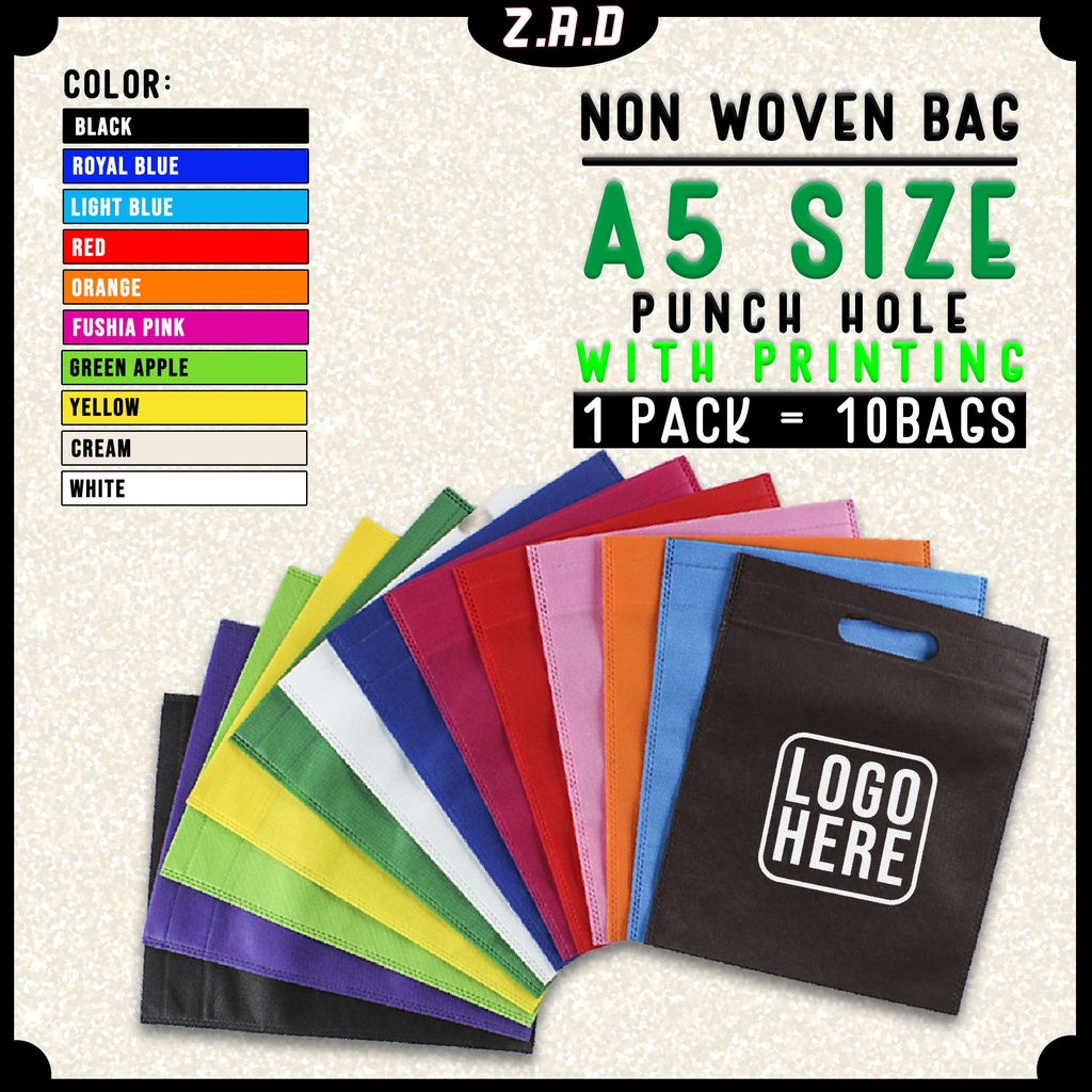 [ 1 Pack = 10 pcs ] Siap Print Non Woven Bag A5 Punch Hole, Eco Friendly Reusable Custom Logo