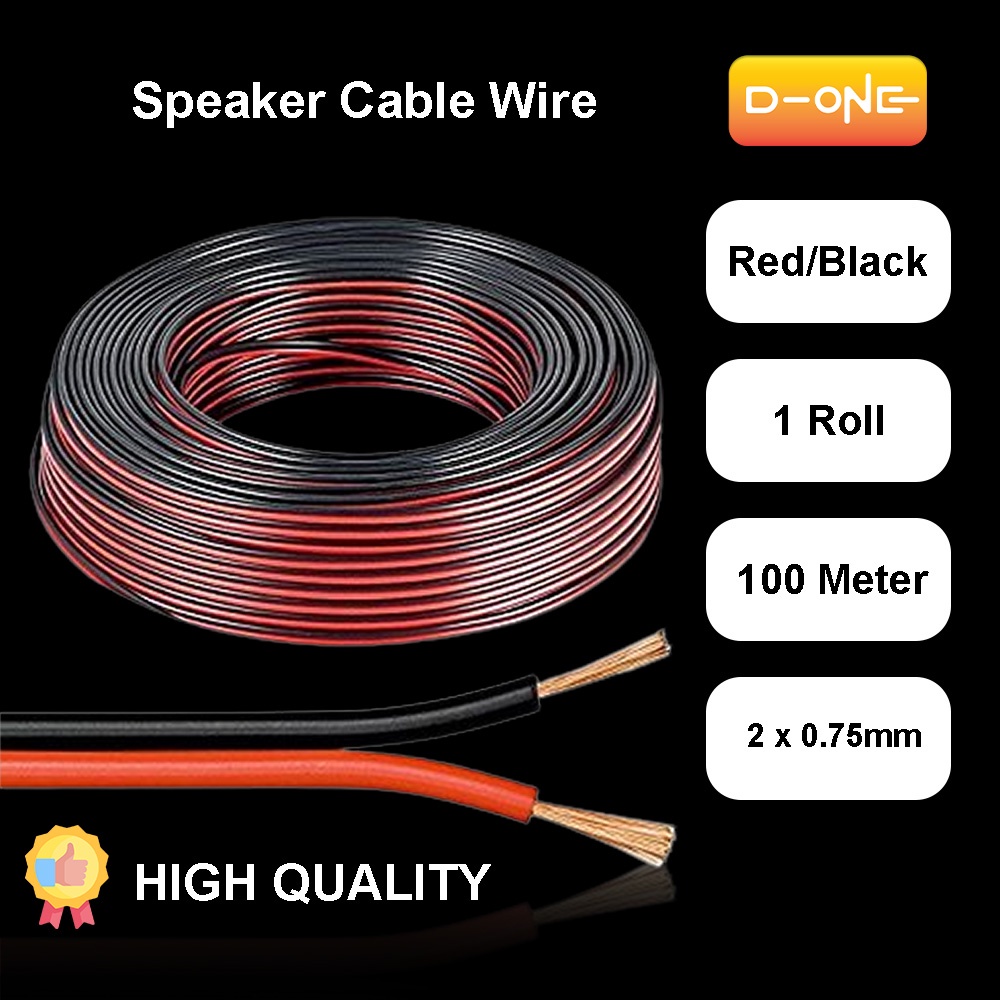 [1 Roll/ 100 Meter] Twin Flat Speaker Cable Audio Wire (Red/Black) 2x0.75mm PVC Wayar Speaker