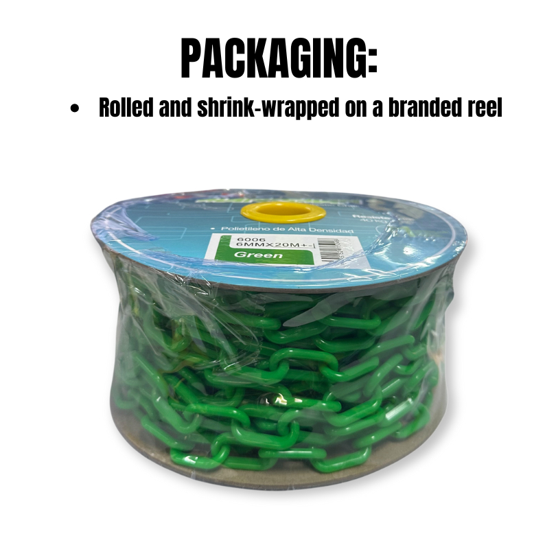 [1 Roll] MARKSMAN 6mm / 8mm x 20m Safety PVC Plastic Chain Barricade PVC Link Chain Gate / Rantai Plastik Pagar jaya diy