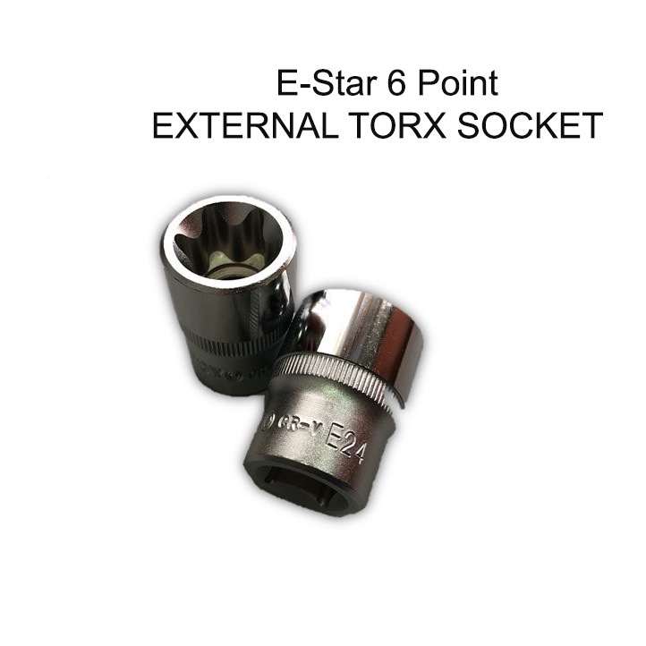 [ 1 UNIT ] 1/2" E-Star 6 Point Short EXTERNAL TORX SOCKET Hand Box Star Socket (MADE IN TAIWAN)
