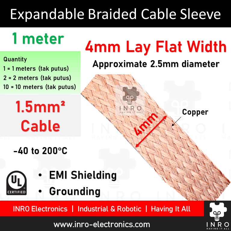 [1 meter] Copper Braided Expandable Braided Cable Sleeving Grounding, EMI Shielding, 2mm - 50mm width