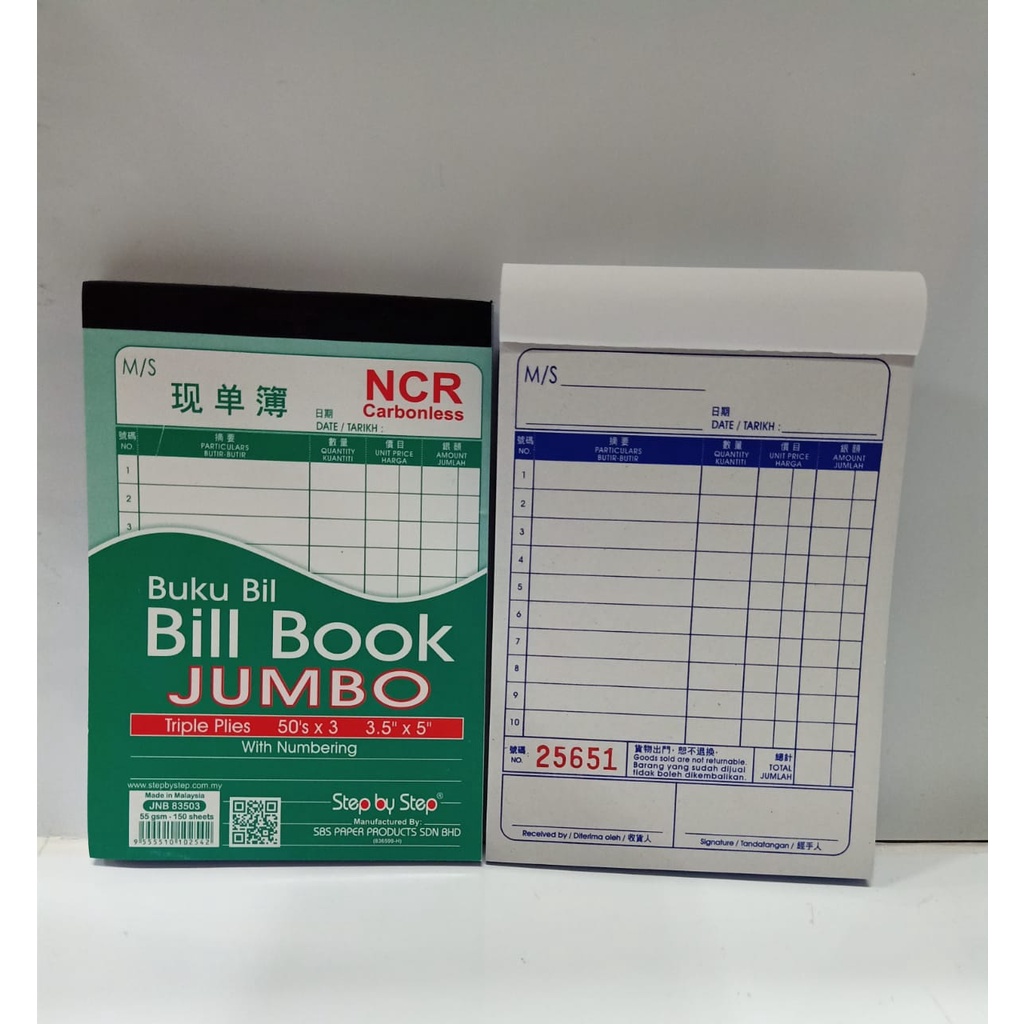[10 BOOK] JUMBO Bill Book NCR Carbonless with Numbering JNB83503