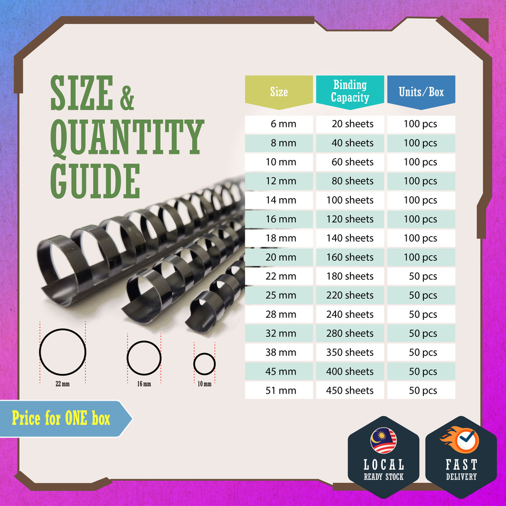 [ 100'S/BOX ] PLASTIC BINDING COMB 21 RINGS ( 8mm / 10mm / 12mm )