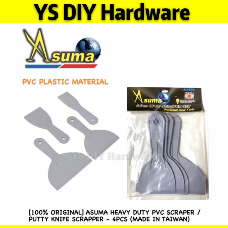 [100% ORIGINAL] ASUMA HEAVY DUTY PVC SCRAPER / PUTTY KNIFE SCRAPPER - 4PCS (MADE IN TAIWAN)