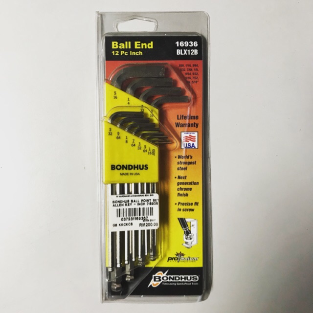 [100% ORIGINAL] BONDHUS 12PCS INCH BALL END POINT ALLEN-KEY (16936-BLX12B)