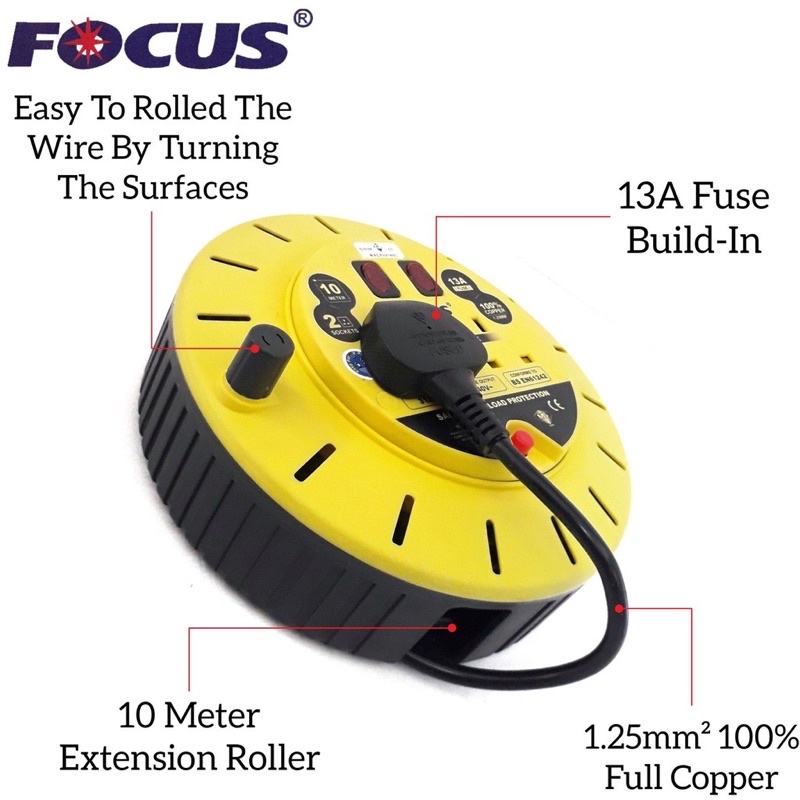 [100% ORIGINAL] FOCUS 10M 2 GANG EASY 2 PIN PLUG IN EXTENSION WIRE SOCKET CABLE (ROLL TYPE)