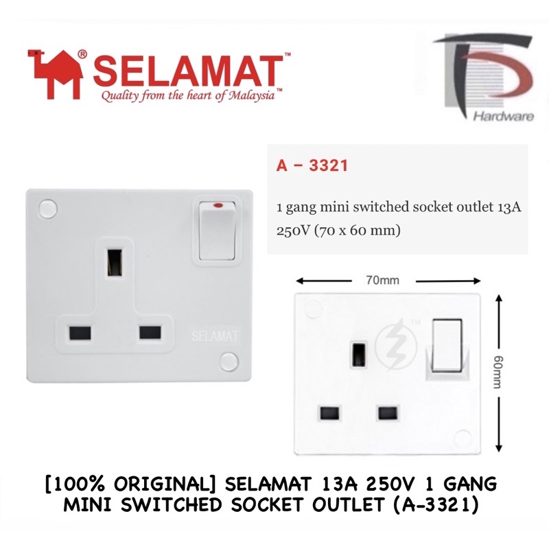 [100% ORIGINAL] SELAMAT 13A 250V 1 GANG MINI SWITCH SOCKET OUTLET (A-3321)