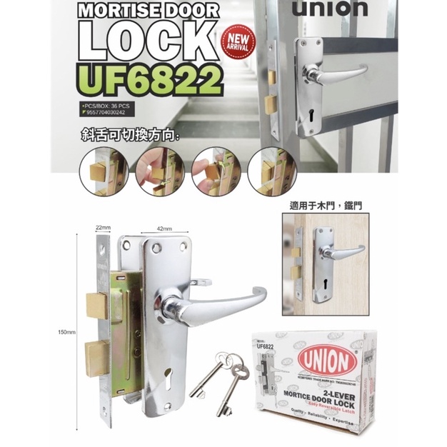[100% ORIGINAL] UNION HEAVY DUTY MORTISE METAL DOOR LOCK SET UF6822 (MADE IN MALAYSIA) *UNION / FUDA GRADE*