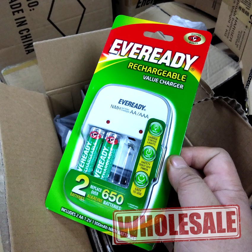 [100% Original] Eveready Recharge Value Charger + 2 AA NiMH rechargeable batteries.
