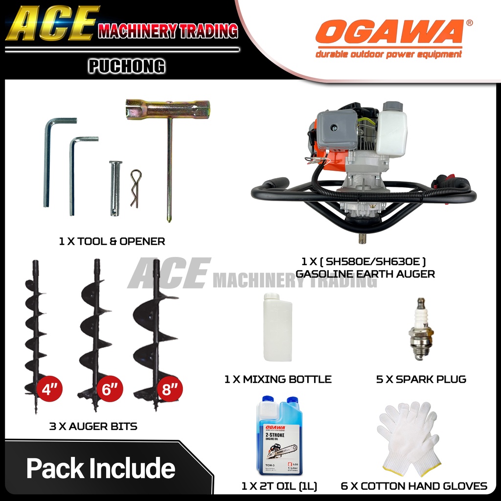 [ 100% Original ] Ogawa Earth Auger Machine SH580E / SH630E Mesin Korek Tanah Included (4", 6", 8")